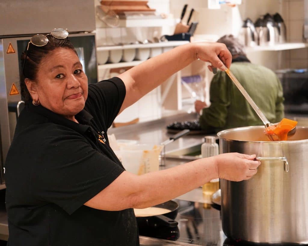 “Ik voel me hier als een vis in het water,” zegt ze. “De sfeer is altijd gezellig, met collega’s én met de bezoekers. Mensen waarderen het eten en ik leer steeds meer mensen kennen. Wat wil je nog meer?”